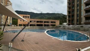 Impressionante casa a Villeta. Ampio appartamento di 75 m² in una zona residenziale con servizio di sicurezza 24 ore su 24, aree comuni: due piscine, una jacuzzi, una piscina per bambini, giochi d’acqua, aree verdi, parcheggio per visitatori e persone con mobilità ridotta. L’appartamento si trova al 12° piano con vista sulla piscina e sul centro di Villeta. Dispone di due camere da letto, la camera da letto principale con bagno, un soggiorno-sala da pranzo con possibilità di studio, un balcone con vista meravigliosa e una zona barbecue con tavolo. La zona lavanderia è ben ventilata e la cucina è dotata di forno, fornelli a gas, due piani di lavoro e frigorifero. Rifiniture in alluminio, legno laminato e piastrelle in ceramica.